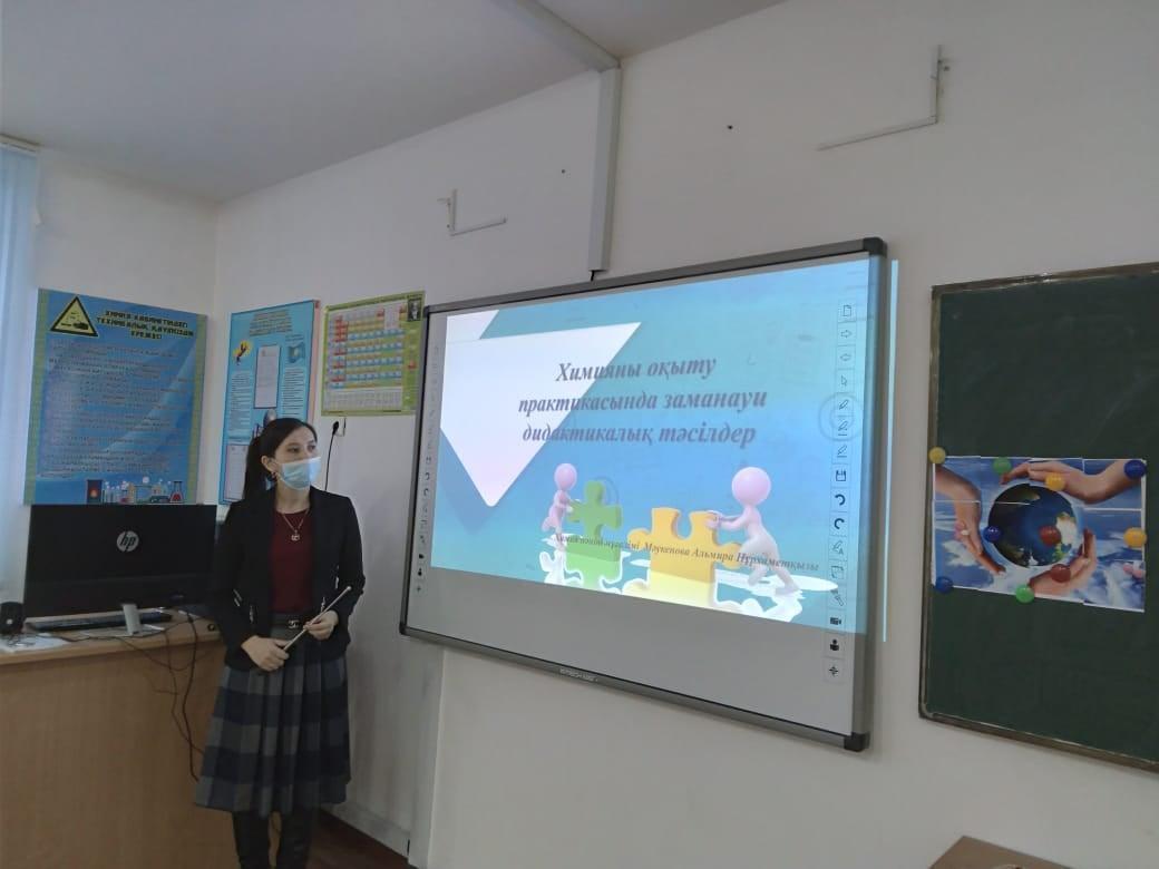 20.01.2022 жылы "Биологияны, химияны оқыту практикасында заманауи дидактикалық тәсілдерді жүзеге асыру" тақырыбында шығармашылық топ отырысы штаттық режимде өтті . Химия пәнінің мұғалімі Мәукенова А, биология пәнінің мұғалімдері Молдабекова Г. мен Нусіп Р. өз іс-тәжірибелерімен бөлісті. Мақсаты: биологияны, химияны оқыту практикасында заманауи дидактикалық тәсілдерді жүзеге асыру іс-тәжірибелерімен бөлісу.