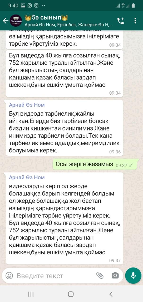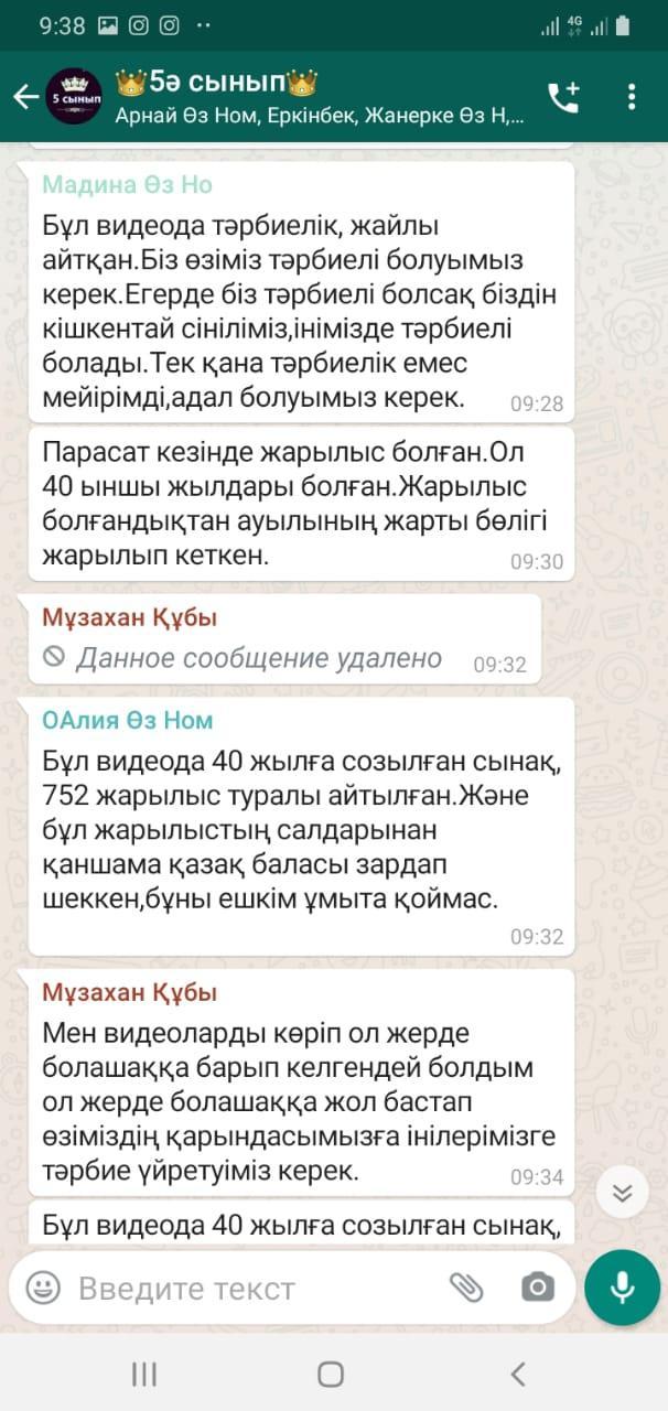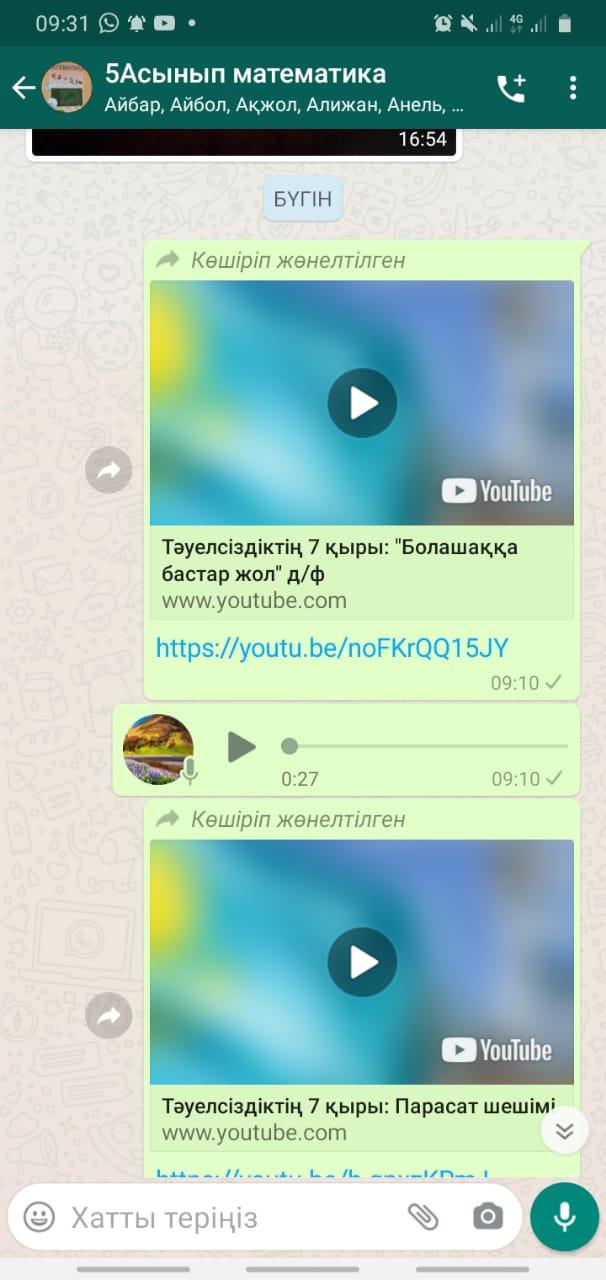 27 November 2020 0 1 2 3 4 5 Тұңғыш The president Күні Тұңғыш The president Күніне орай Қазақстан Тәуелсіздігінің құндылықтарын насихаттау мақсатында 16-21 қараша аралығында 1-11 сынып оқушыларына «Тәуелсіздік 7 қыры» циклының «Бір ел, бір тағдыр» және "Болашаққа бастар жол" деректі фильмдері көрсетіліп, тәрбие сағаттары өткізілді.