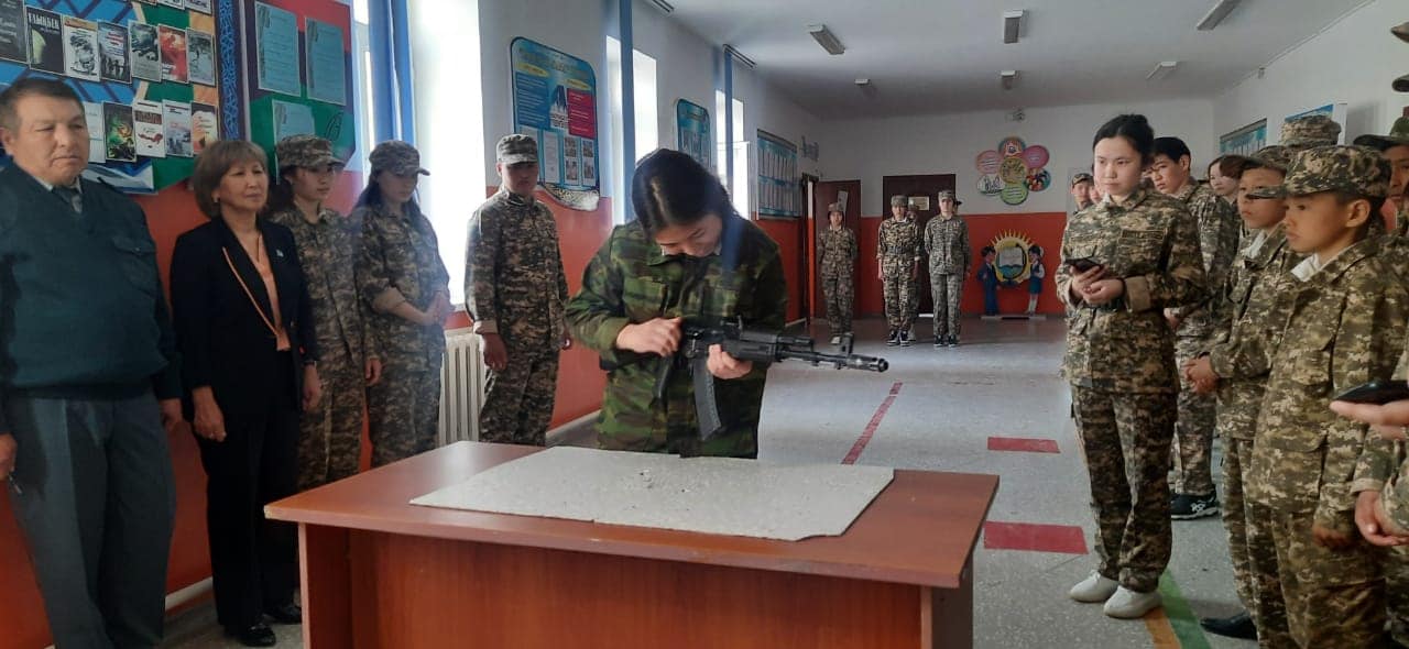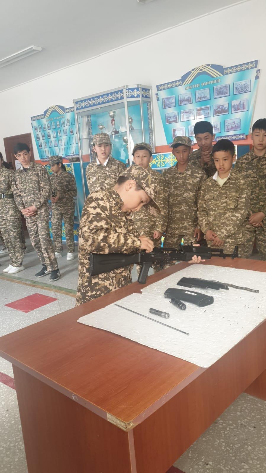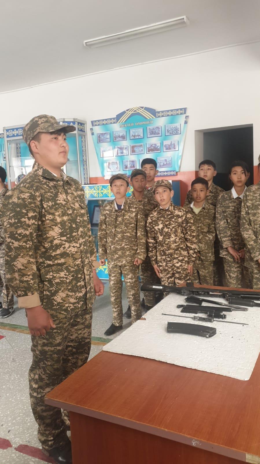 Сәуірдің 7 күні тәрбие ісінің жоспарына сай мектебіміздің АӘжТД пәннің мұғалімі Е.А.Сейфульмаликовтың ұйымдастыруымен "Ұранды елдің-ұрпағы қайсар" атты әскери патриоттық ойын өткізілді. Мақсаты:оқушыларды елін, жерін, халқын сүюге, Отанын қорғауға, патриот болуға тәрбиелеу. Сайысқа 7,10,11 сыныптар аралығында оқушылар қатысып төмендегідей кезеңдерден сайысқа түсті1. Әр топ ұраны мен тобын таныстыру