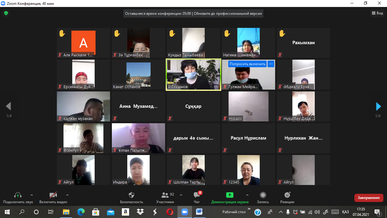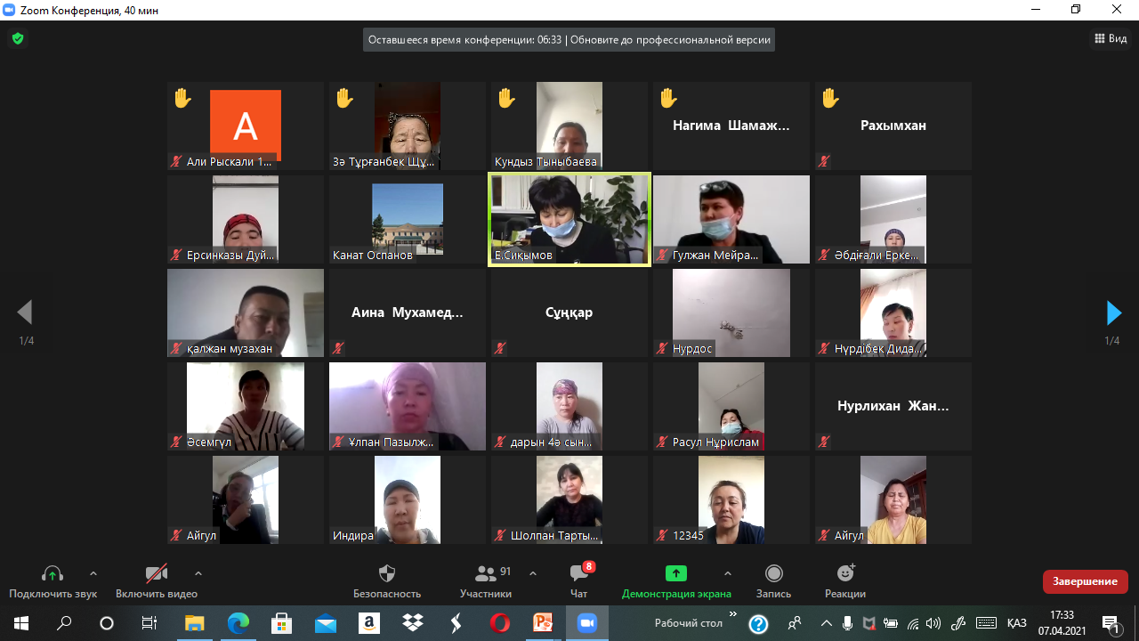 «Е. Сиқымов атындағы орта мектебі мектеп жанындағы интернатымен» коммуналдық мемлекеттік мекемесінің 2020 – 2021 оқу жылының 07 сәуір күні ЗУМ платоформасымен жалпы ата-аналар жиналысы өткізілді.Күн тәртібінде:
