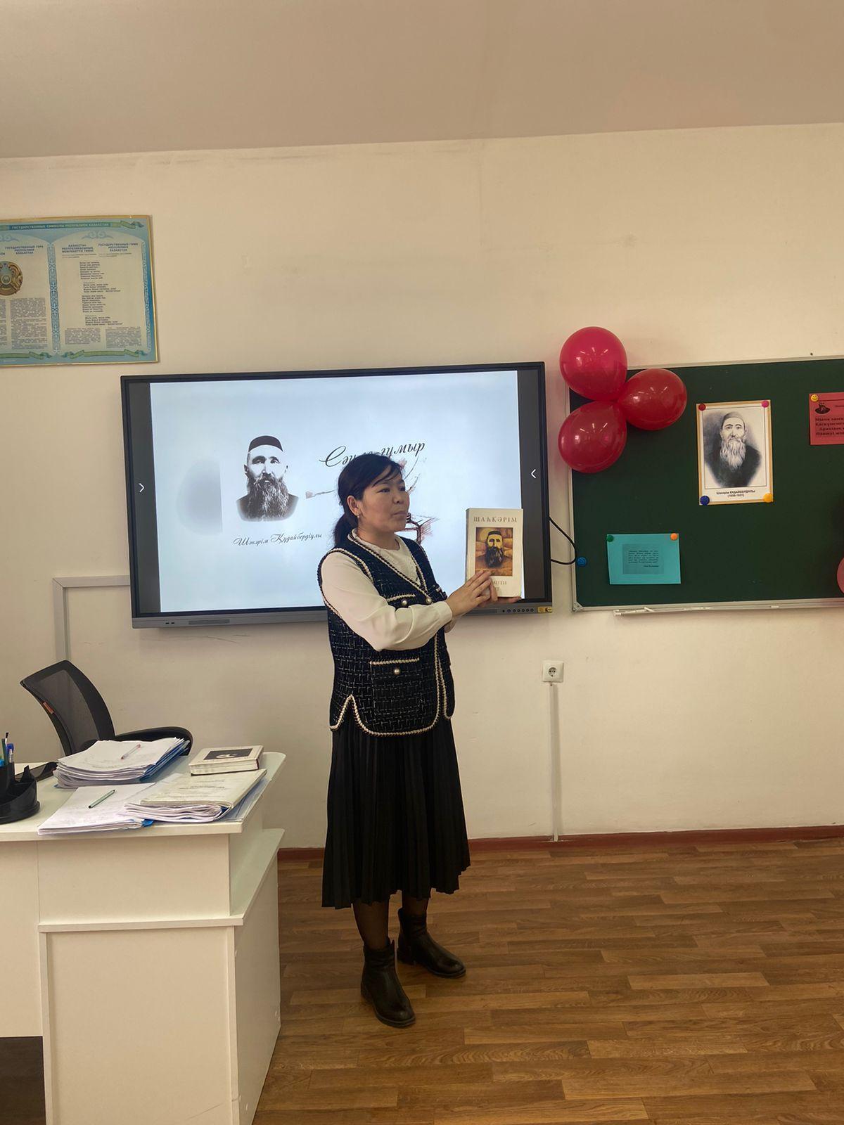 Мектепішілік әдістемелік және дарынды оқушылармен жұмыстың жоспарына сәйкес «Шәкәрім ақын шалқарынан» атты Шәкәрім Құдайбердіұлының 165 жылдығына арналған әдеби танымдық кеш болып өтті. Мақсаты: оқушылардың Шәкәрім Құдайбердіұлы туралы білімдерін дамыту; ақын өлеңдерінің идеясын ашу, рухани-адамгершілік қағидаларымен танысу, өлеңдерін нақышына келтіре оқи отырып, негізгі түйінге мән беру.