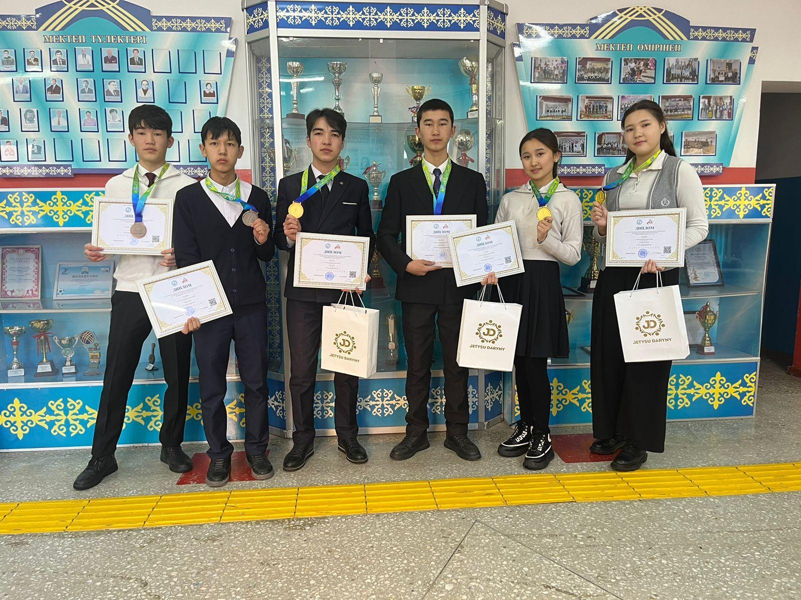 Ауыл мектептерінің оқушыларына арналған жалпы білім беретін пәндер бойынша республикалық олимпиаданың ІІІ (облыстық)  кезеңінде мектебіміздің оқушылары: 9-сынып оқушысы Жаңарсын Елжан информатика пәні бойынша  ІІ орын, республикадан Алғыс хат, пән мұғалімі Оспанов Канат Муратович, 9-сынып оқушысы Ербол Айбар информатика пәні бойынша  І орын, пән мұғалімі Жубаева Жаная Раисовна, 9-сынып оқушылары Мақатқызы Мәрмәр және Мәсіғұтқызы Баян құқық пәні бойынша  І орын, пән мұғалімі Салиева Динара Бактыбаевна,  11-сынып оқушылары Ердәулет Ынта І орын және Машай Елнар ІІ орын физика пәні бойынша І орын иеленді, пән мұғалімі Бейсембаева Шугыла Нуркасымовна.