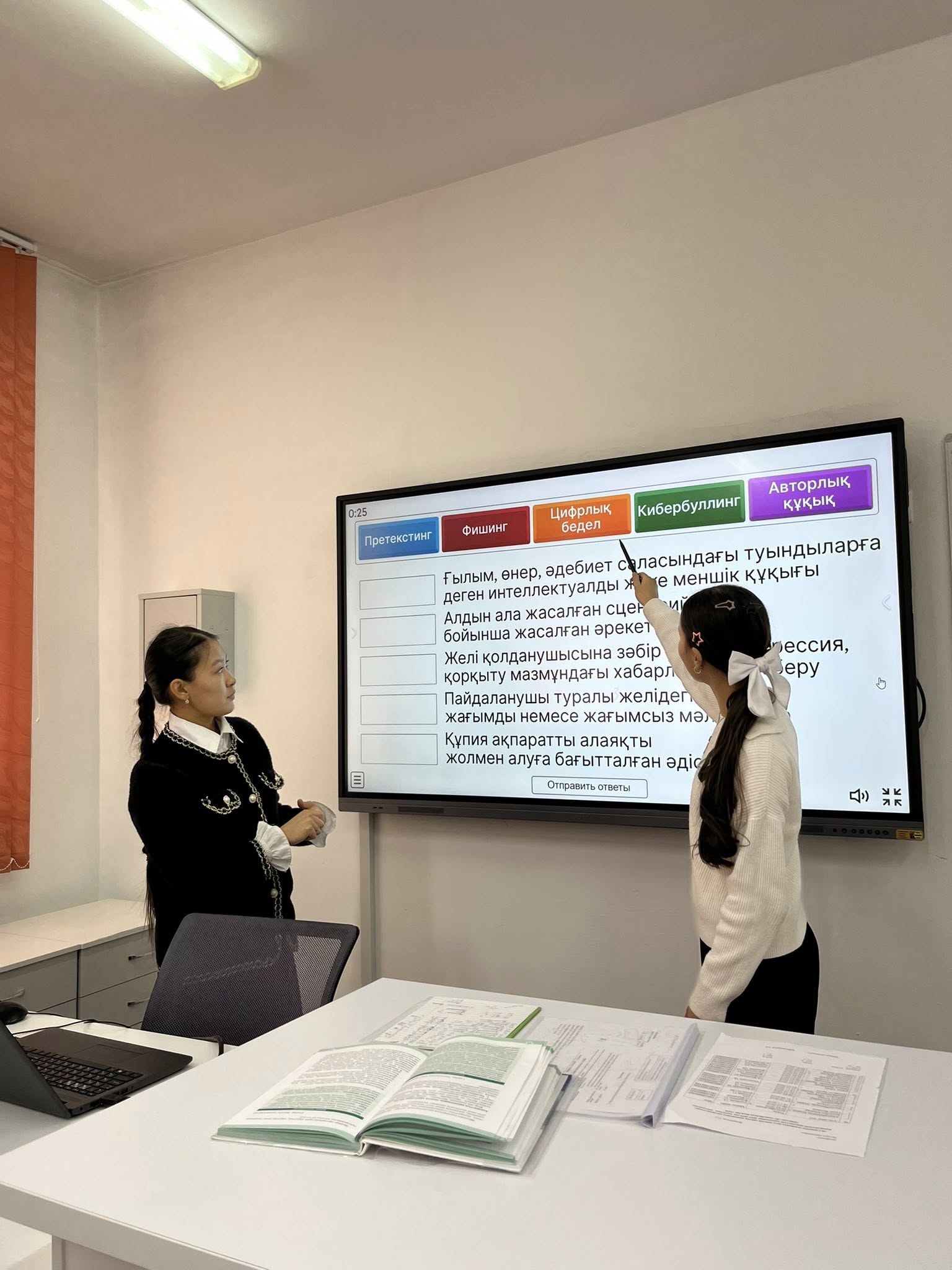 Қосымша білім беру педагогі 8 сынып оқушыларымен «Cyber Smart — қауіпсіз желі қолданушысы бол!» тақырыбында STEAM сабағы өтті.