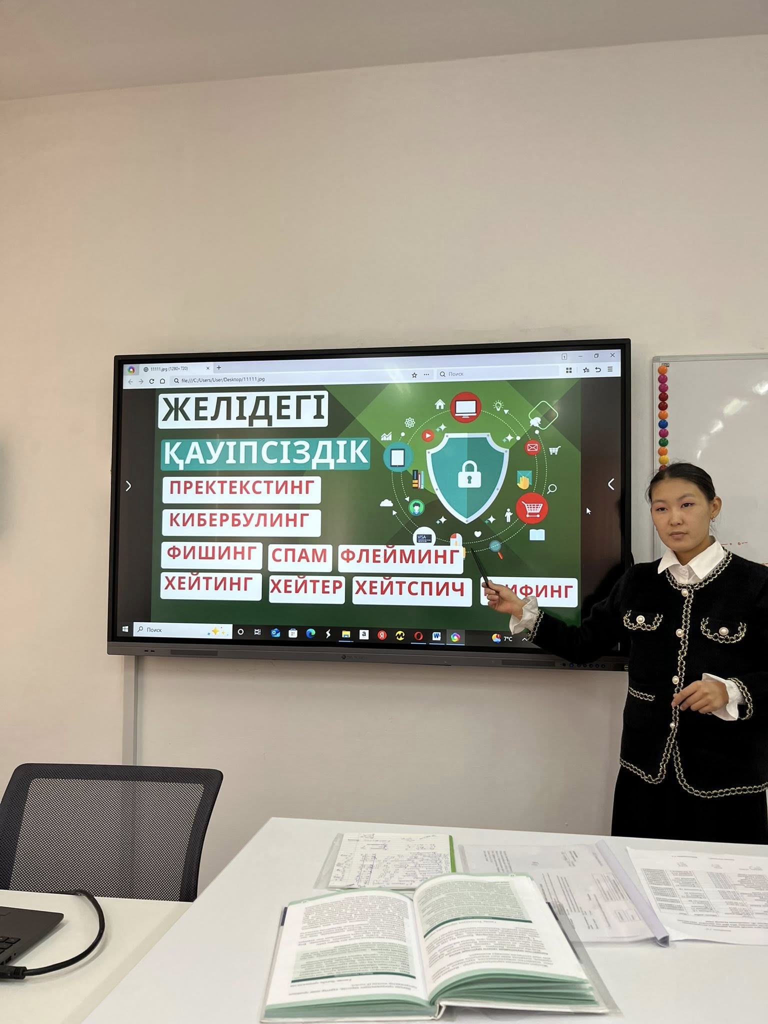 1. Қолданушыларға желідегі негізгі қауіп түрлері (фишинг, хакерлік шабуыл, алаяқтық, кибербуллинг) туралы түсінік беру.