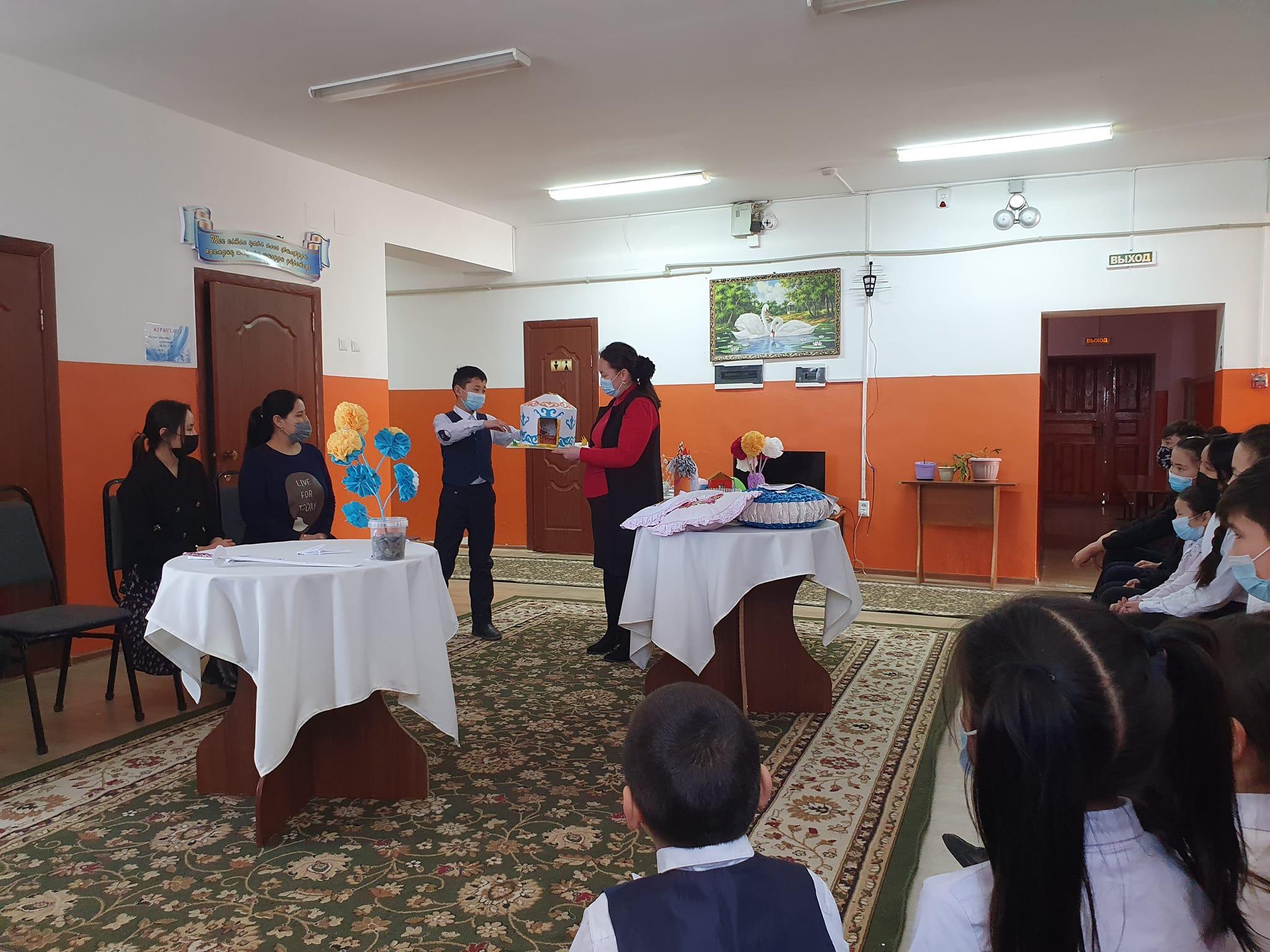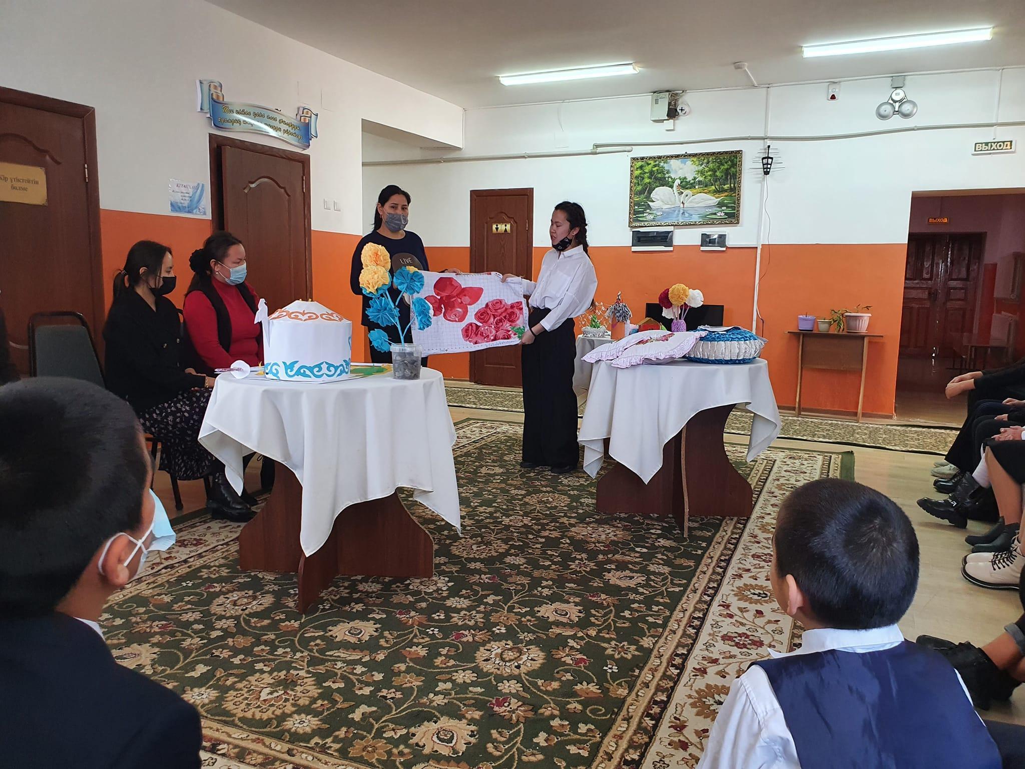 17 ақпан күні оқушылардың көркем шығармашылық қабілетін дамыту арқылы эстетикалық тәрбиелеу мақсатында мектеп жанындағы интернат оқушыларының арасында "Талаптыға нұр жауар" атты қолөнер көрме- сайысы болып өтті. Оқушылар тоқыма бұйымдарды, ағаштарды, түрлі-түсті қағаздарды және т.б заттарды пайдалана отырып, өздерінің жасаған қолөнер туындыларымен таныстырып өтті. Үздік қолөнер бұйымдарын жасаған оқушылар арнайы сыйлықтармен марапатталды.