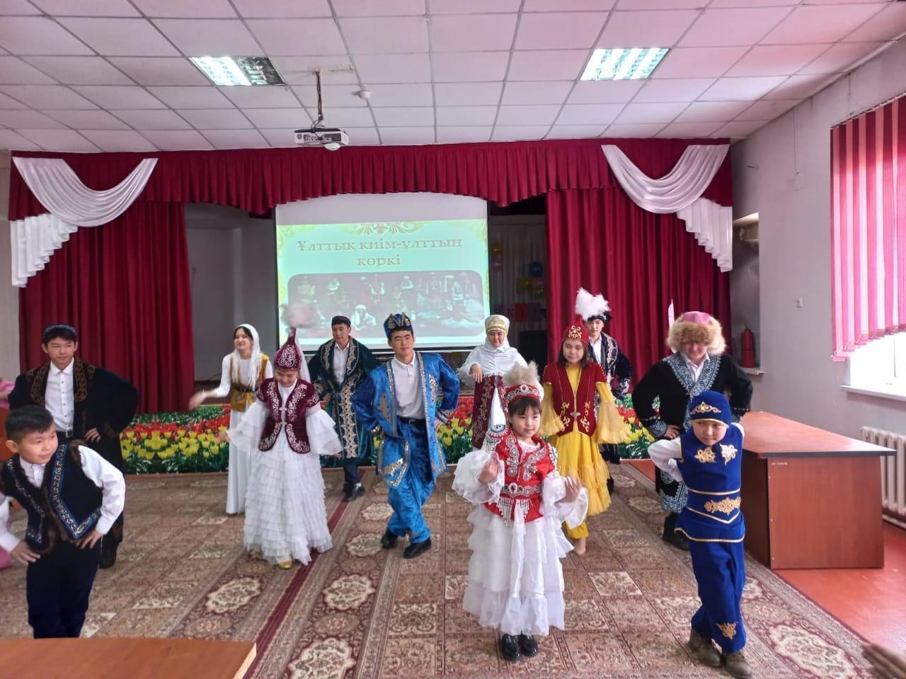 «Ең әдемі киім – ұлтыңның киімі», - деген ұлы адамдар. Қазақ халқының ұлттық киімдерінің түрі де, үлгісі де еш халықтан кем болған жоқ. Оның көркем үлгілері әлемнің этнографиялық мұражайлары мен көрмелерінен орын алған. Ұлт мәдениетінде бағалы киімдер сый-сыяпат, дипломатиялық қатынастарда ескерткіш, белгі ретінде жүрген. Ат, шапан құрметтеудің көрінісі деп бағаланған. Осыған орай оқушыларға қазақ халқының ұлттық киімдерінің ерекшеліктері мен түрлерін көрсету, өз халқының салт-дәстүрін сыйлауға, құрметтеуге, мақтан етуге тәрбиелеу мақсатында 2022 жылдың 08 ақпан күні  "Дәстүр мен ғұрып" жобасы аясында интернат тәрбиешілерінің ұйымдастыруымен "Ұлттық киім ұлттың көркі" атты сән көрсетілімі  ұйымдастырылып өткізілді. Көпшілік назарына ұлттық нақыштағы көйлектер, бас киімдер, шапандар және ұлттық аяқ-киімдер  ұсынылды. Сонымен қатар оқушылар "Қара жорға" биін билеп, қазақтың ұлттық аспаптарында ойнап, өз өнерлерін көрсетті.