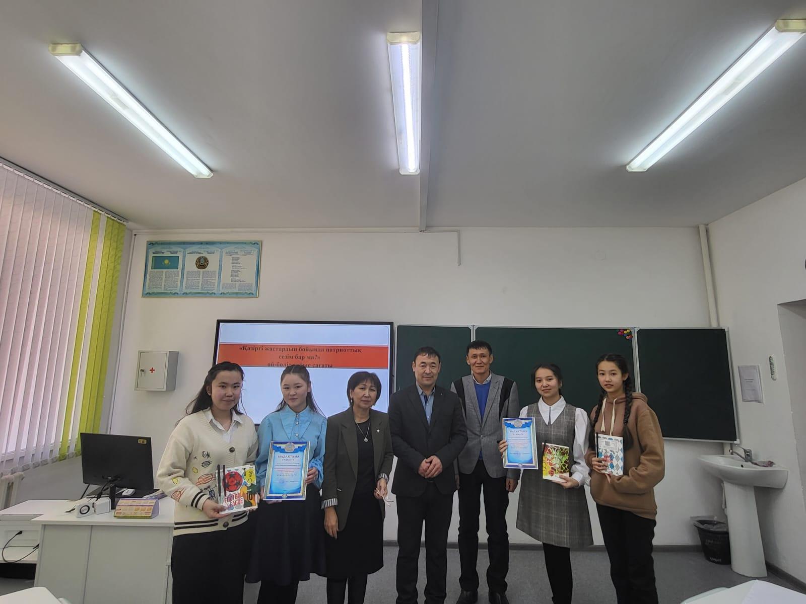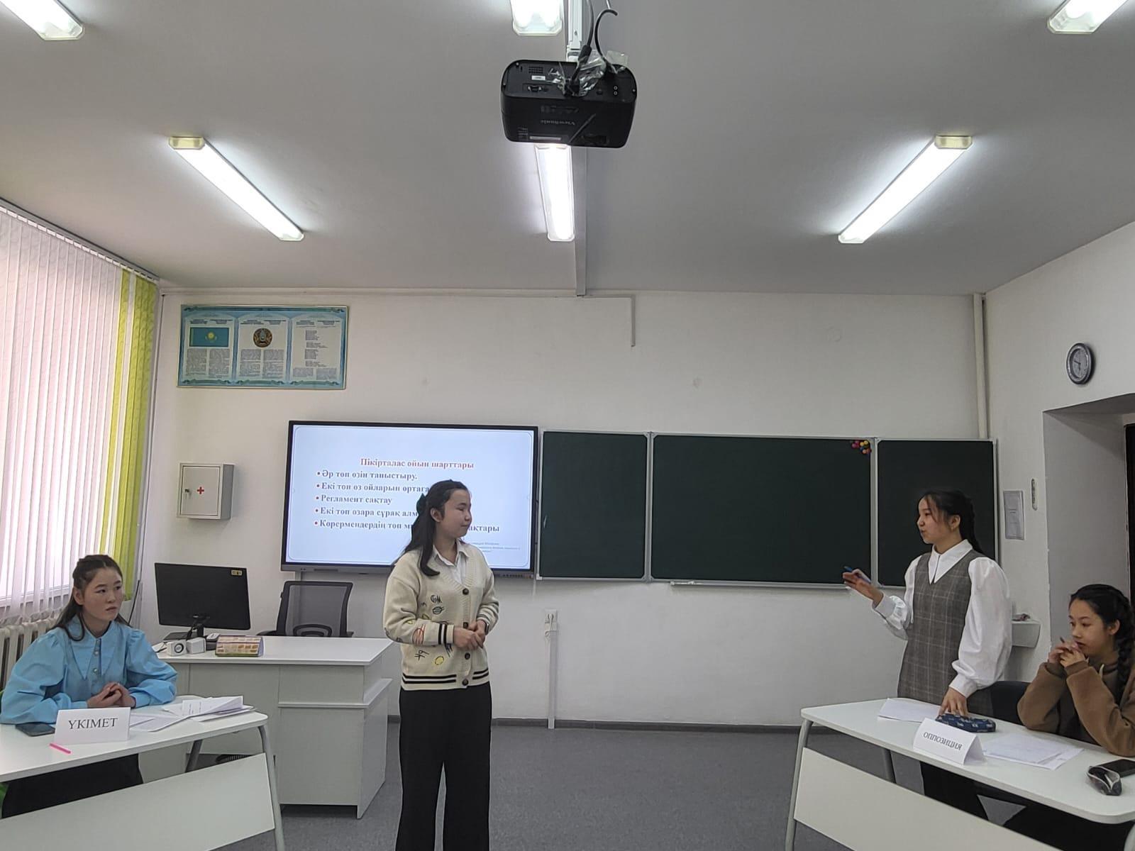 "Ризашылық- мейірімділік бұлағы" жалпы ұлттық мәдени-білім беру жобасы аясында өткен мектепішілік турнир"Қазіргі таңда жастардың бойында патриоттық сезім бар ма?"тақырыбында дебат өткізілді.