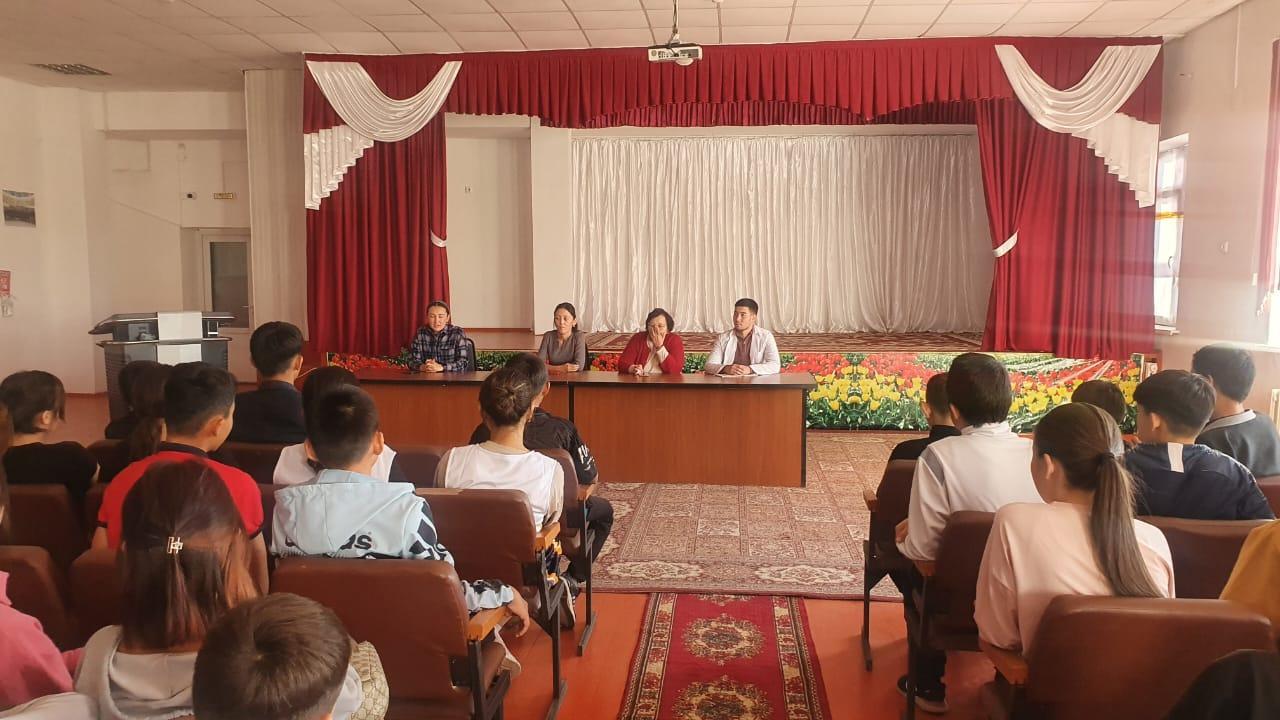 Оқушылардың құқықтық сауаттылығын арттыру, салауатты өмір туралы ұғымдарын кеңейту, қауіпсіздік ережелерімен таныстыру мақсатында мектебімізде қазан айының 21 күні Ақсу АПБ ЖПҚБ ЮПТ инспекторы полиция аға лейтенанты Мамырбекова Назерке Сабырбекқызымен кездесу ұйымдастырылып өткізілді. Кездесуге мектеп психологі, мектептің тәрбие ісі жөніндегі орынбасары, мектеп медициналық қызметкері қатысып, оқушыларға бүгінгі күндегі өзекті мәселелер, орын алып жатқан жәйіттер туралы айтып, оқушыларды құқықтық сауатты бола отырып, өз міндеттерін ұмытпауға шақырды. Кездесуде оқушылар да өздерін қызықтырған сұрақтарын ортаға салып, жауаптарын алды.