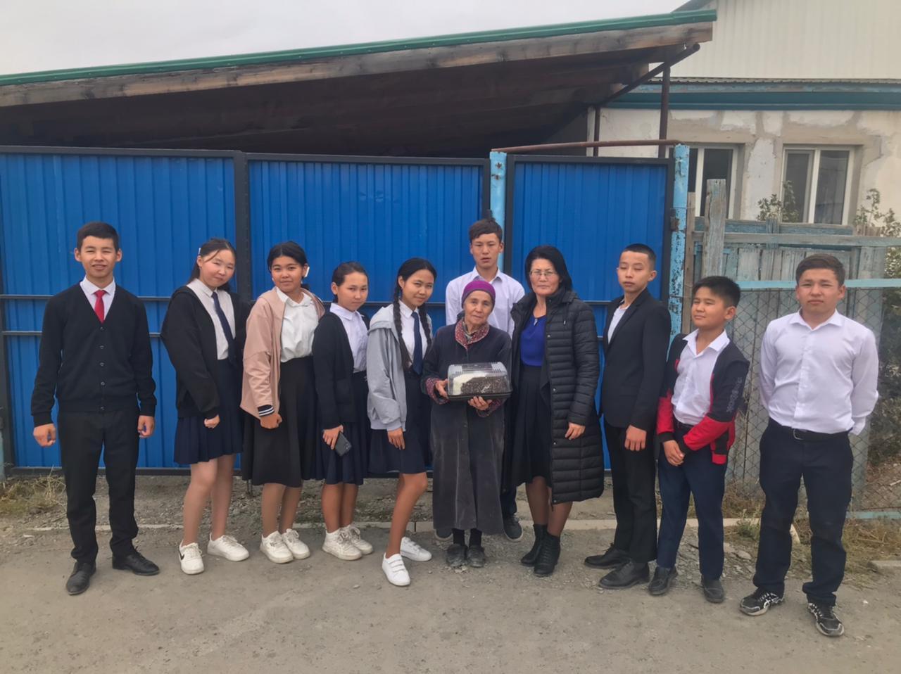 Бабалар жолынан таймай, бүгін біздің мектеп оқушылары да қарттарымызға мерекелік көңіл күй сыйлау, құттықтау мақсатында қарт апа, аталарымыз, қарт ұзтаздарымыздың үйіне барып, мерекелік көңіл-күй сыйлап қайтты.