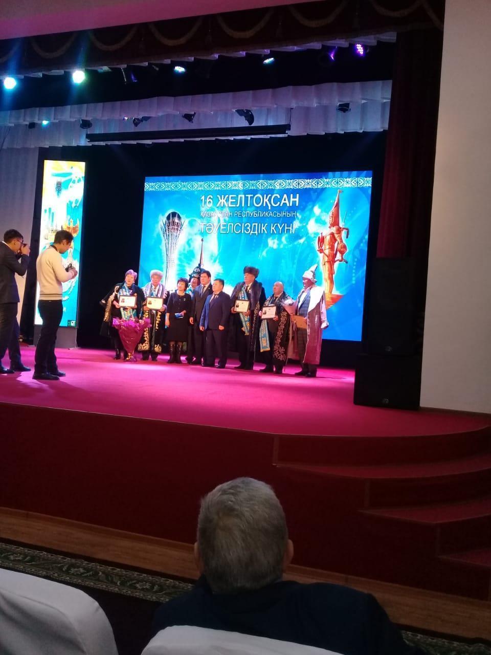 16-желтоқсан Қазақстан Республикасының Тәуелсіздік күні мерекесіне орай аудандық мәдениет үйінде салтанатты шара болып өтті. Мұндай марапаттау шарасы Облыста басталып,әр аудандарда жалғасын табуда. Шарада аудан әкімі Базарханов Есім Сейілханұлы құттықтау сөз сөйлеп, марапаттар табыстады. Шара барысында мектебіміздің директоры Ибраимова Рахат Нығметбекқызы "Nur Otan" партиясының "Белсенді қызметі үшін" төсбелгісімен марапатталды.