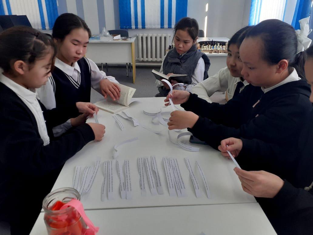 Ерінбей оқып көруге" деп, ұлы данышпан Абай да білім көзі кітапта екенін айтып кеткен. 6"Ә" сынып оқушылары кітапханада О.Бөкейдің "Тортай мінер ақ боз ат" атты шығармасымен танысып, бірге оқып, талқылады. Шығарма арқауы болған Тортай атты жасөспірім баланың өмірі, оның кітапқа деген сүйіспеншілігі, өмірге деген құштарлығы балаларға қызықты болды.