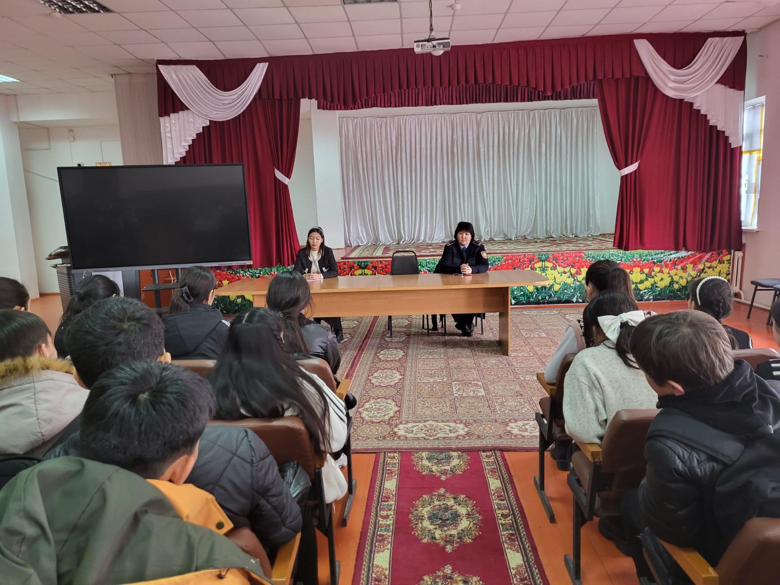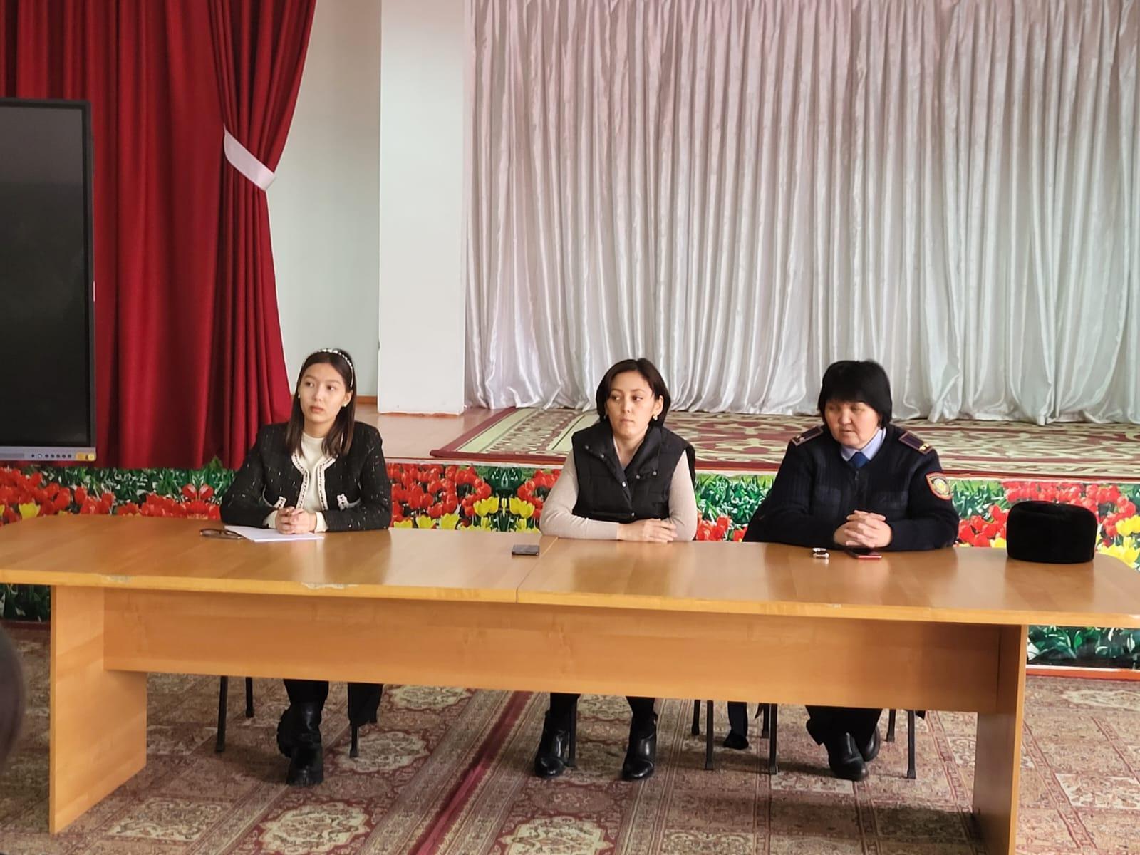 Мектебімізде ақпанның 03 күні тәрбие саласымен Ақсу ІІБ-мен біріккен жоспарыдың негізінде кездесу ұйымдастырылып өткізілді. Кездесу барысында Ақсу аудандық полиция бөлімінің ювиналды полиция тобының аға инспекторы подполковнигі Нұрлыбекова Қарақат Дәулетовна жасөспірімдер арасында жие орын алатын құқық бұзушылық, буллинг, кибербуллинг туралы айтып, оқушыларды заңға, өмірлеріне қайшы келетін ерсі қылықтарға бармауға шақырды.